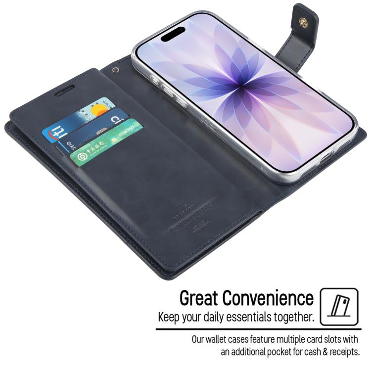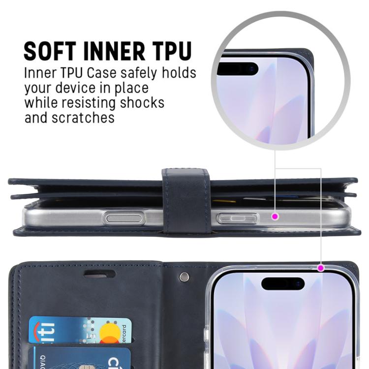 Funda de piel para iPhone 17 GOOSPERY MANSOOR DIARY con 9 ranuras para tarjetas (Azul oscuro)