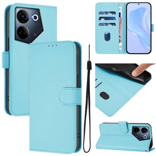 Funda de Piel con Textura y Cordón para Tecno Camon 20 Pro 4G (Azul Cielo)