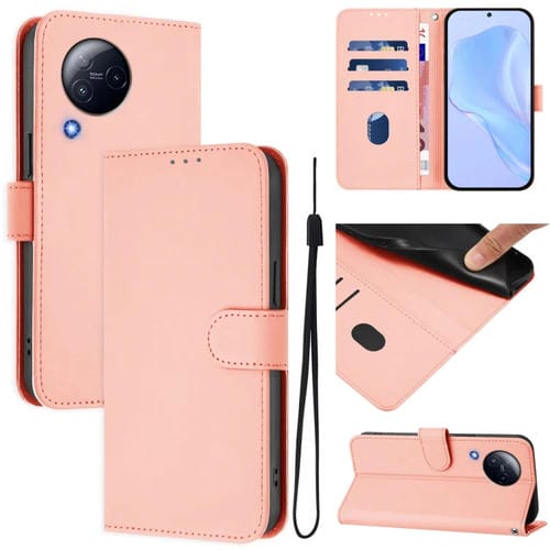 Funda de Piel Sintética con Cordón para Xiaomi Civi 3 5G (Rosa)