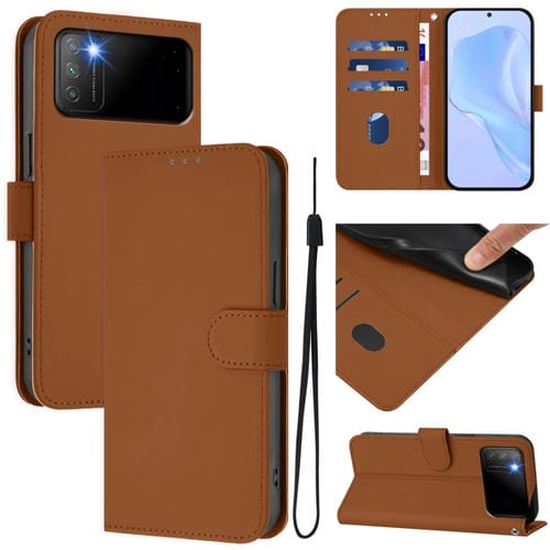 Funda de Piel Sintética con Cordón para Xiaomi Poco M3 (Marrón)
