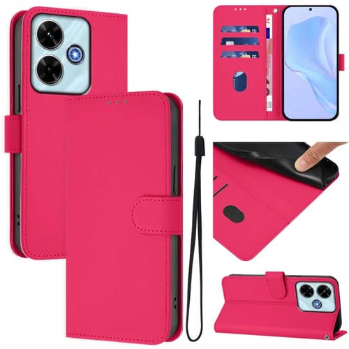 Funda de Piel Sintética con Cordón para Xiaomi Poco M6 4G (Rosa y Rojo)