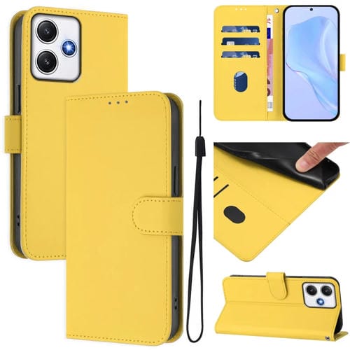 Funda de Piel Sintética con Cordón para Xiaomi Poco M6 Pro 5G (Amarillo Limón)