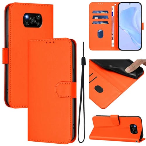 Funda de Piel Sintética con Cordón para Xiaomi Poco X3 Pro / X3 Nfc / X3 (Naranja)