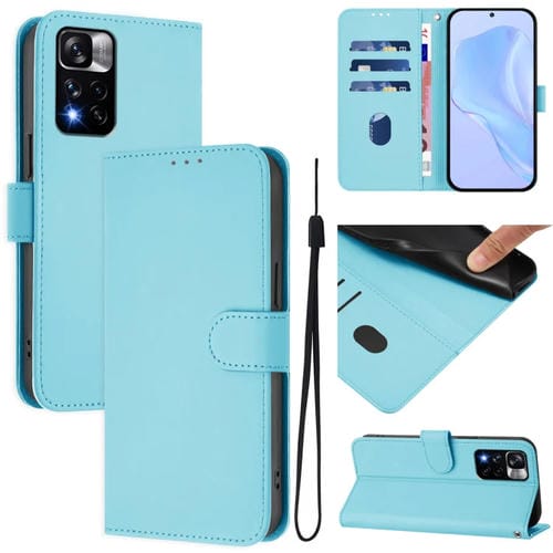 Funda de Piel Sintética con Cordón para Xiaomi Poco X4 Nfc 5G (Azul Cielo)