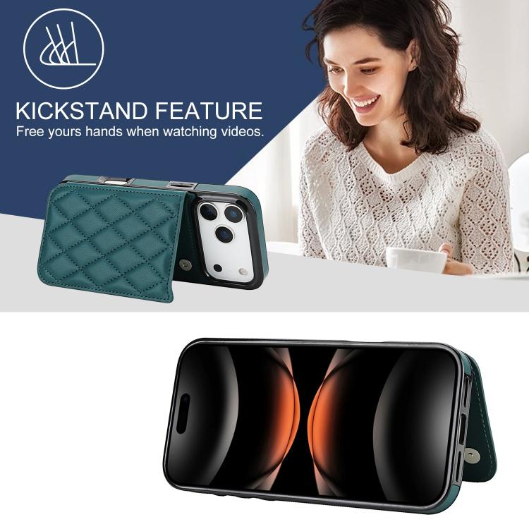 Funda de piel sintética con doble hebilla y diseño rómbico para iPhone 17 Pro (verde)