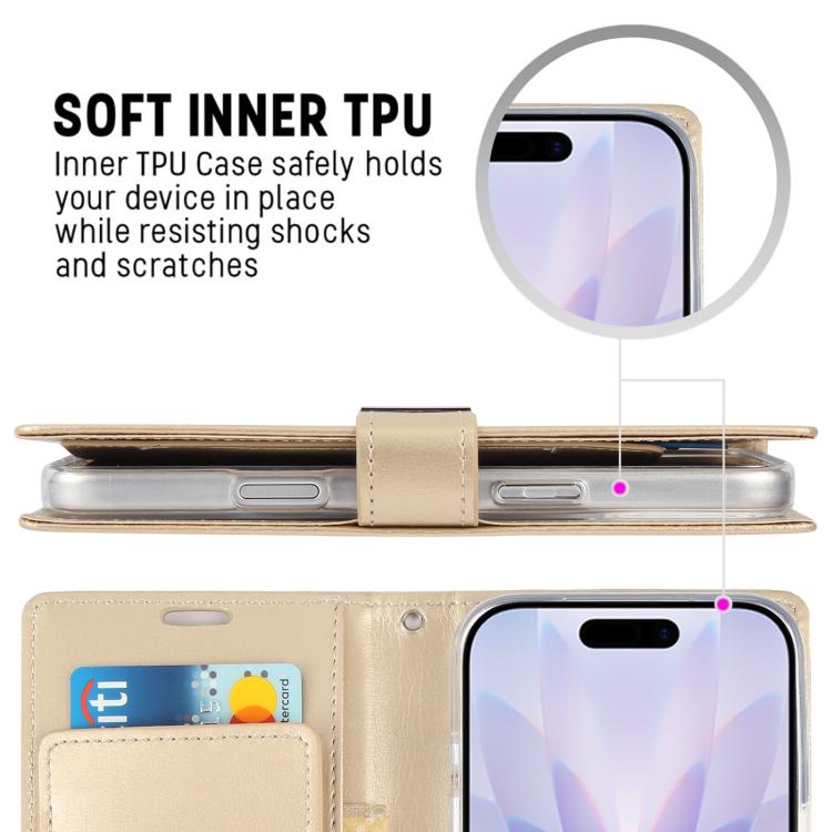 Funda de piel texturizada Crazy Horse para iPhone 17 GOOSPERY RICH DIARY (Dorada)
