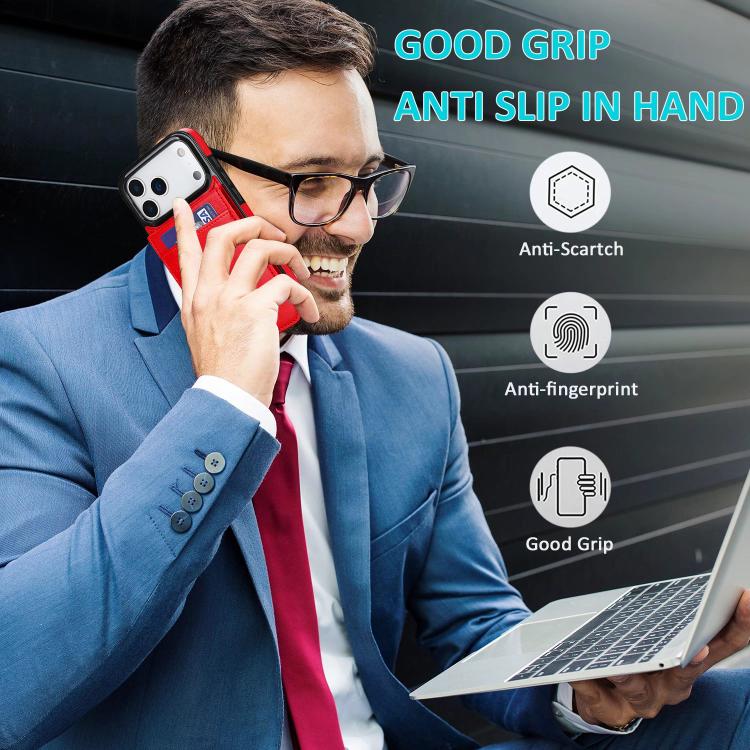 Funda de PU con ranuras para tarjetas para iPhone 17 Pro (color sólido, rojo)