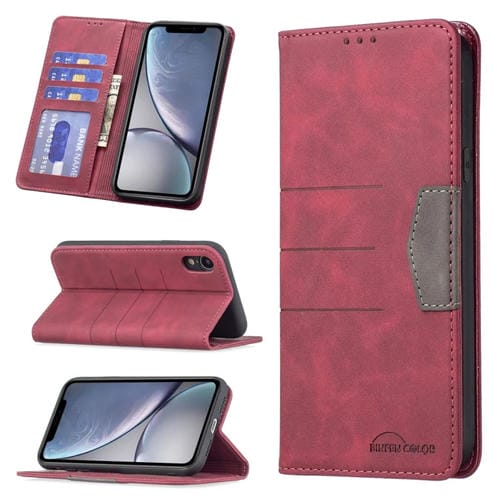 Funda teléfono cuero empalme magnético iPhone Xr (Rojo)