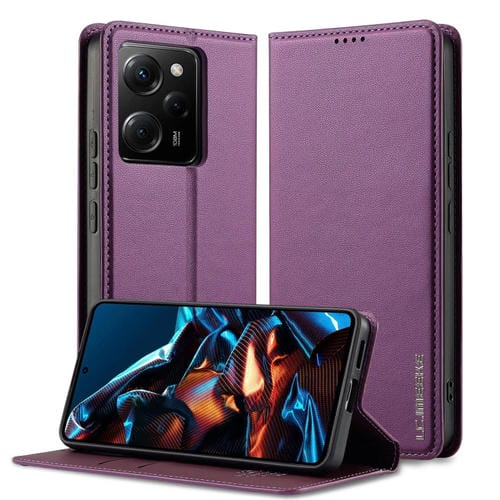Funda de Teléfono de Pu con Textura Fina Esmerilada para Redmi Note 12 Pro 5G Lc.Imeeke L1 Series (Morado)