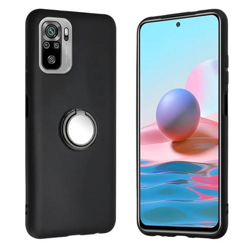 Funda de Teléfono de TPU con Soporte de Anillo Mate para Redmi Note 10 4G / Xiaomi Poco M5S (Negra)