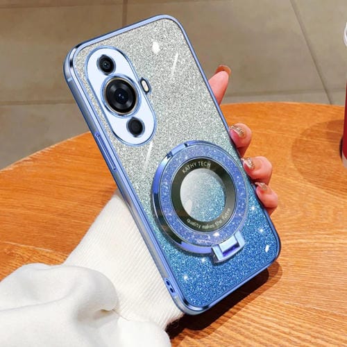 Funda TPU con Soporte Redondo y Purpurina Degradada para Huawei Nova 11 Pro (Azul Sierra)