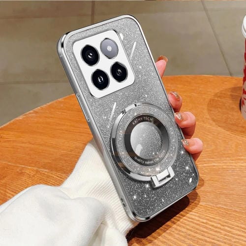 Funda De Teléfono De Tpu Con Soporte Redondo Y Purpurina Degradada Plateada Para Xiaomi 14 Pro (Plateada)