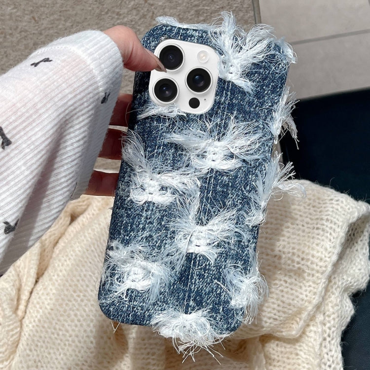 Funda de Teléfono TPU con Tejido a Rayas de Felpa para iPhone 16 Pro Max (Azul Oscuro)