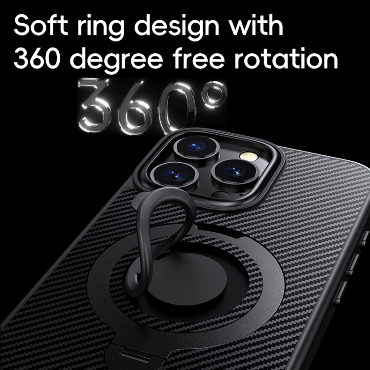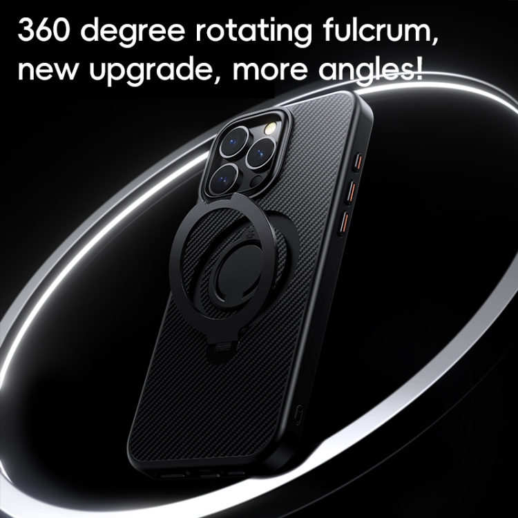 Funda de Teléfono Magsafe Fibra de Carbono para iPhone 16 Pro Max con Soporte Giratorio 360 (Oro Negro)