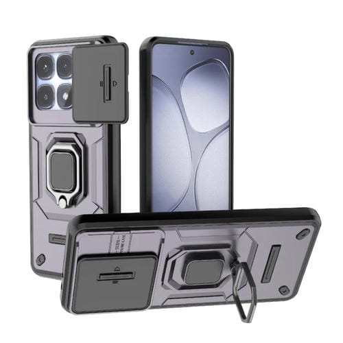Funda de TPU + PC a Prueba de Golpes con Soporte y Cierre Deslizante para Redmi K70 Ultra (Morado)