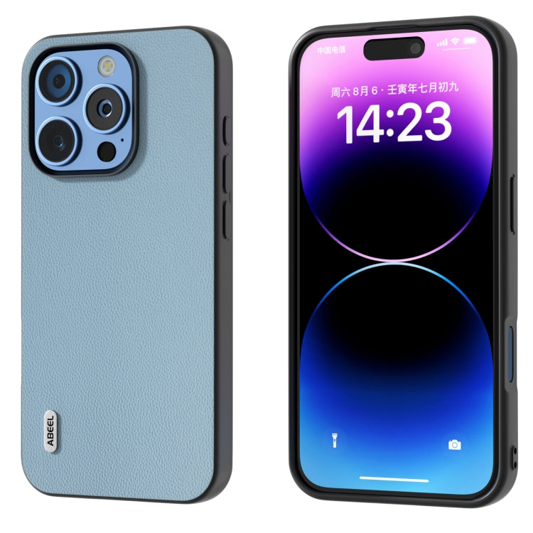 Funda de Cuero Genuino Abeel para iPhone 16 Pro Max con Marco Negro (Azul Cielo)