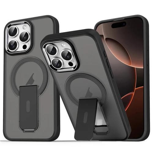 Funda híbrida Acrílico TPU con soporte Magsafe para iPhone 16 Pro Max (Negra)