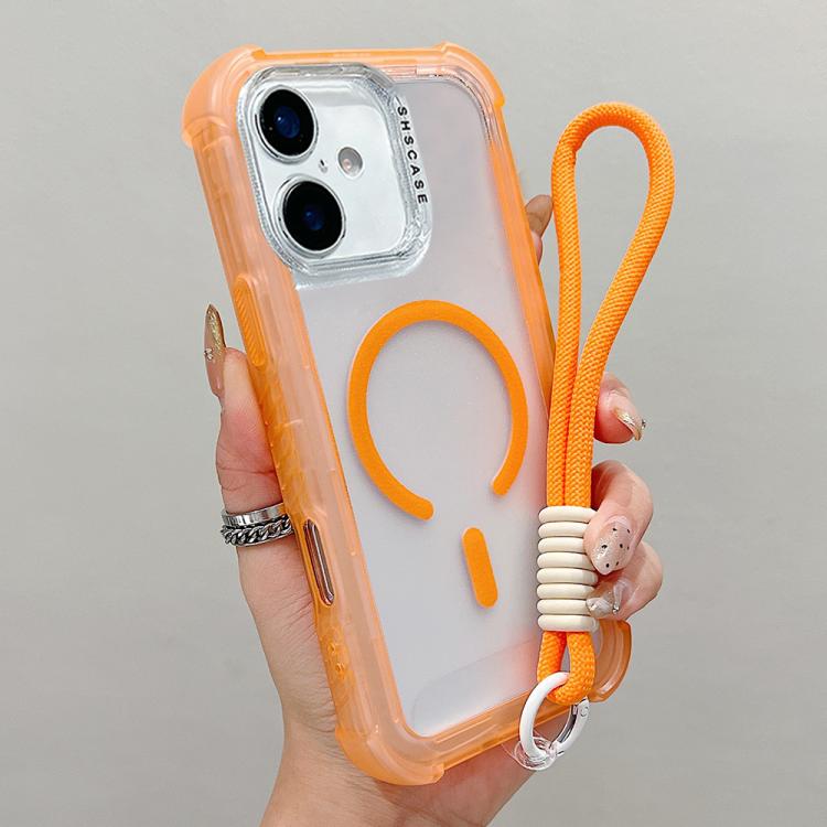 Funda híbrida de TPU mate transparente 3 en 1 MagSafe para iPhone 17 con correa de muñeca (naranja)
