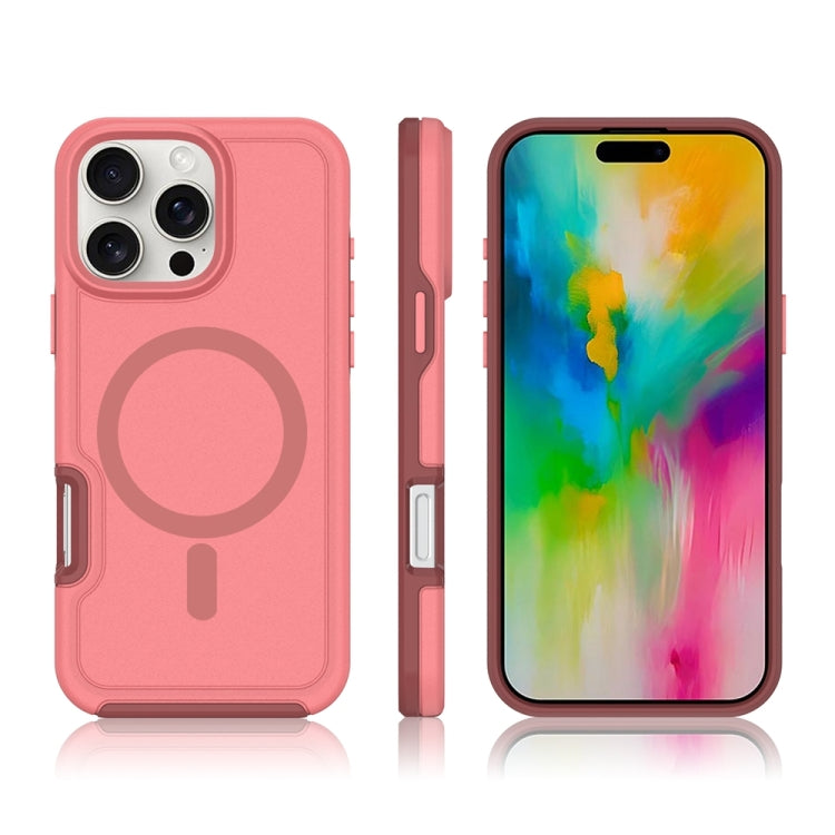 Funda híbrida TPU y PC con Protección Magsafe a Prueba de Golpes para iPhone 16 Pro Max (Rosa Oscuro y Granate)