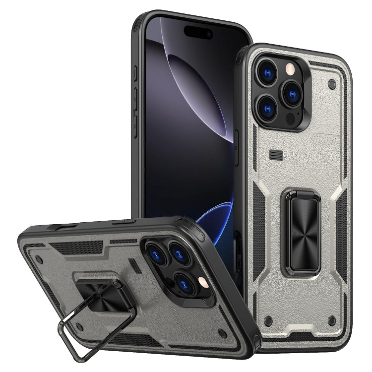 Funda híbrida TPU y PC con soporte de anillo para iPhone 16 Pro (Gris Titanio)