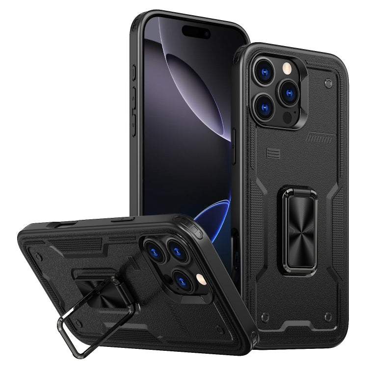 Funda híbrida TPU y PC con soporte para anillo iPhone 16 Pro (Negra)