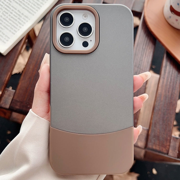 Funda híbrida TPU y Policarbonato para iPhone 16 Pro Max con Tacto Agradable y Contraste de Color (Gris Oscuro y Marrón)