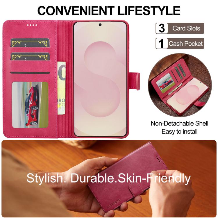 Funda LC.IMEEKE de piel con textura de becerro para Samsung Galaxy S25 Edge 5G (roja)
