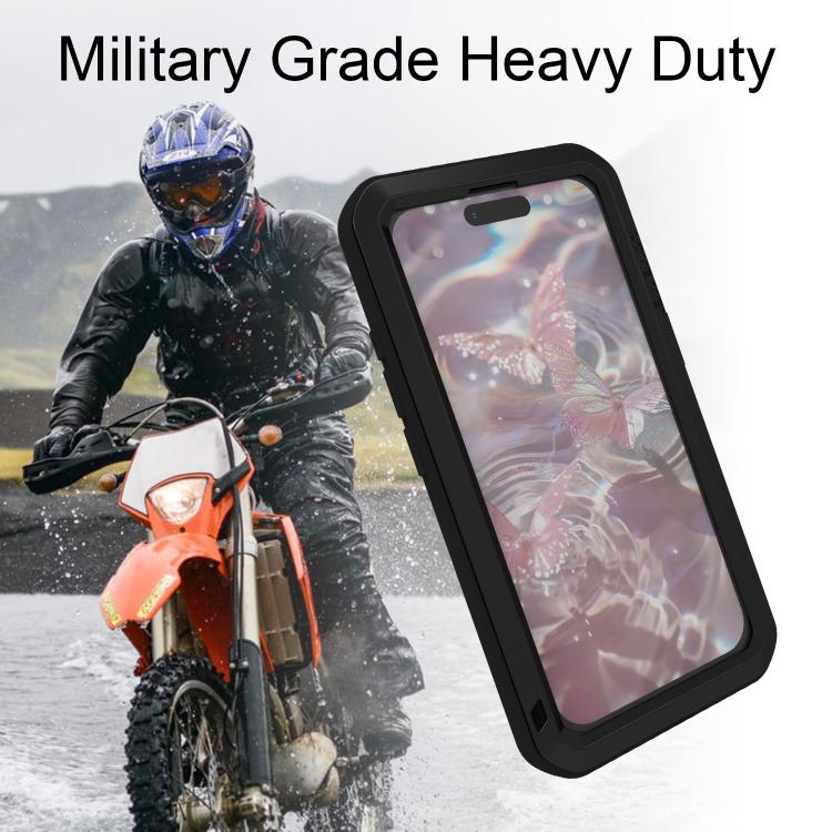Funda Love Mei de metal resistente a golpes, impermeable y antipolvo para iPhone 17 Pro (negra)