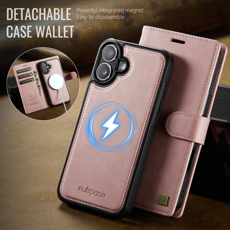 Funda magnética MagSafe AutSpace A05 2 en 1 con textura de piel de becerro retro para iPhone 17 (rosa)