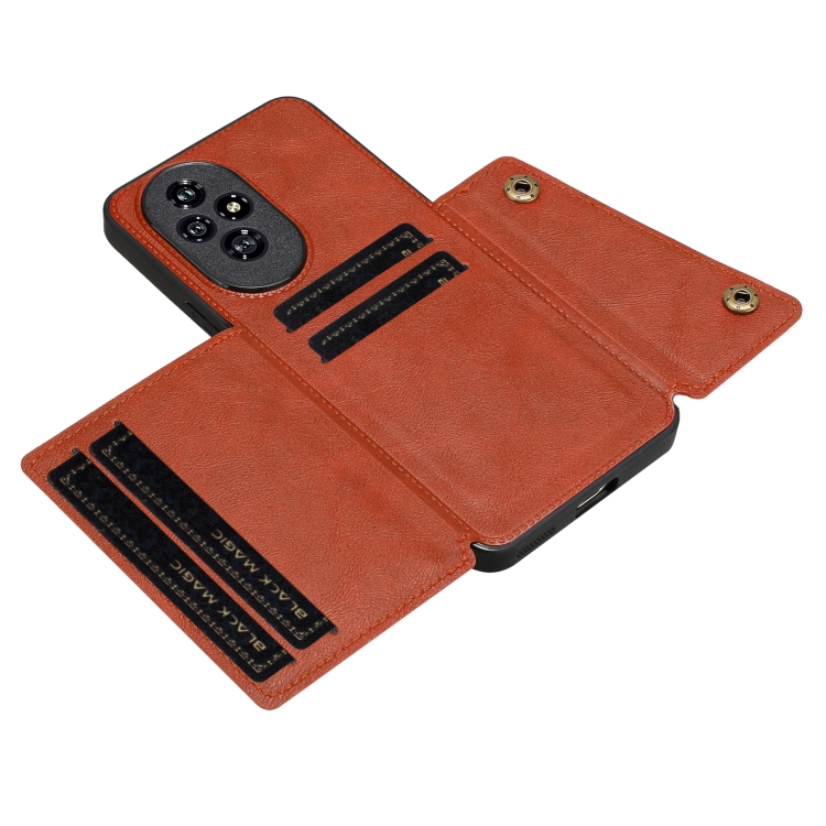 Funda Magnética para Honor 200 con Ranuras para Tarjetas y Doble Hebilla (Marrón)