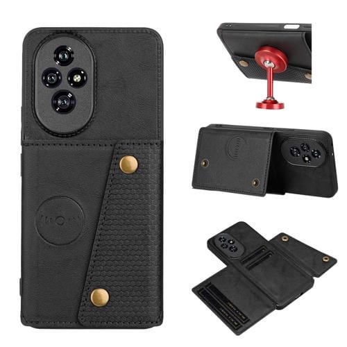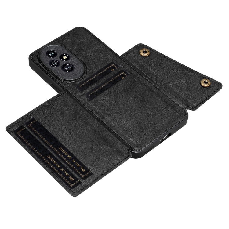 Funda Magnética para Honor 200 con Ranuras para Tarjetas y Doble Hebilla (Negra)