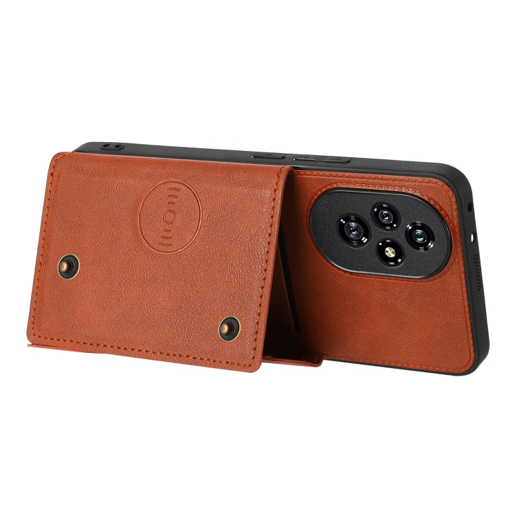 Funda Magnética para Honor 200 Pro con Ranuras para Tarjetas y Doble Hebilla (Marrón)