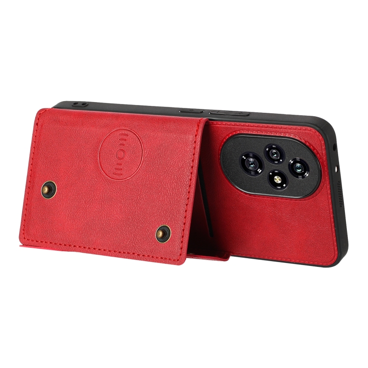 Funda Magnética para Honor 200 con Ranuras para Tarjetas y Doble Hebilla (Rojo)