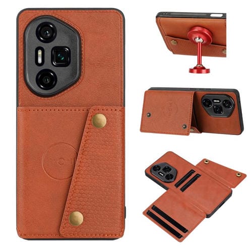 Funda Magnética para Honor 300 Ultra con Ranuras para Tarjetas y Doble Hebilla (Marrón)