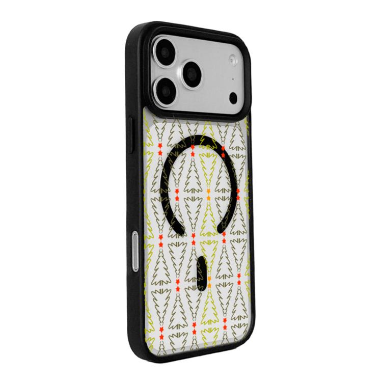 Funda magnética resistente con borde negro pintado para iPhone 17 Pro, serie Navidad (árbol de Navidad adornado con estrellas).