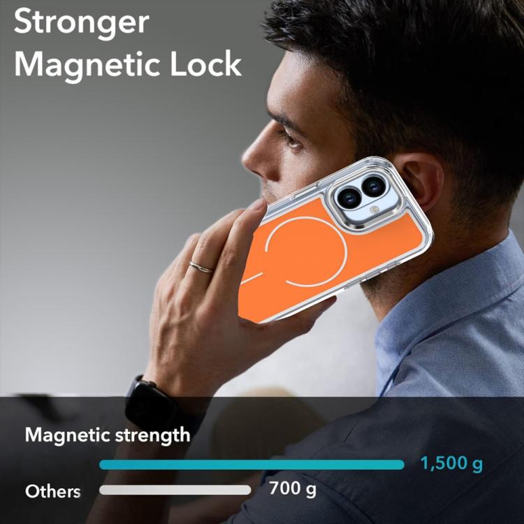 Funda MagSafe híbrida de PC y TPU con marco suave y doble color electrochapado para iPhone 17 (naranja)