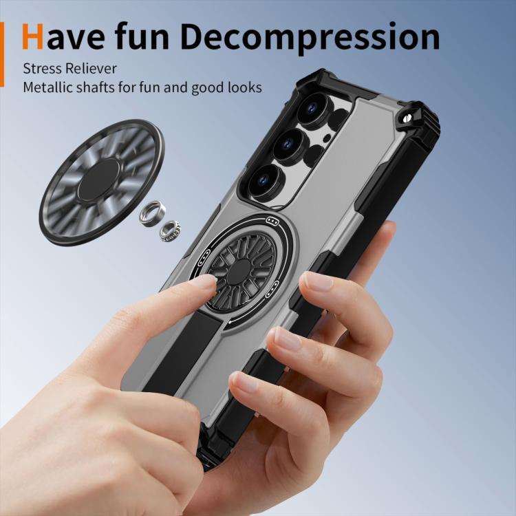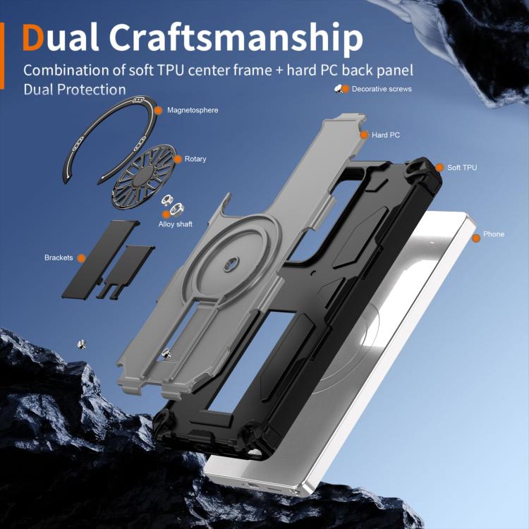 Funda MagSafe para Samsung Galaxy S24 Ultra 5G, a prueba de golpes, con soporte metálico y eje (plateada)