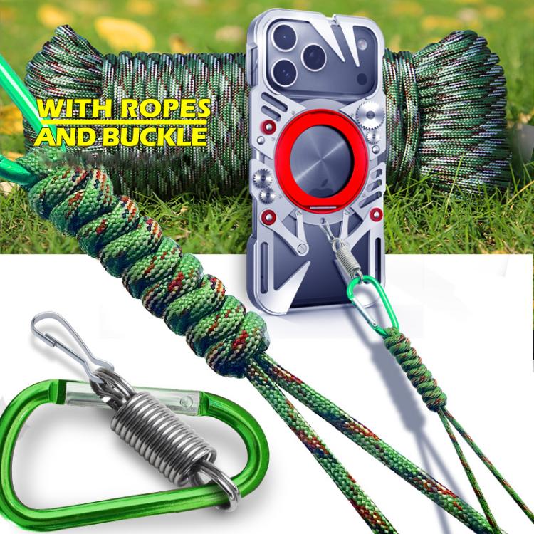 Funda metálica hueca MagSafe con soporte giratorio para iPhone 17 Pro Max con cordón (plateada)