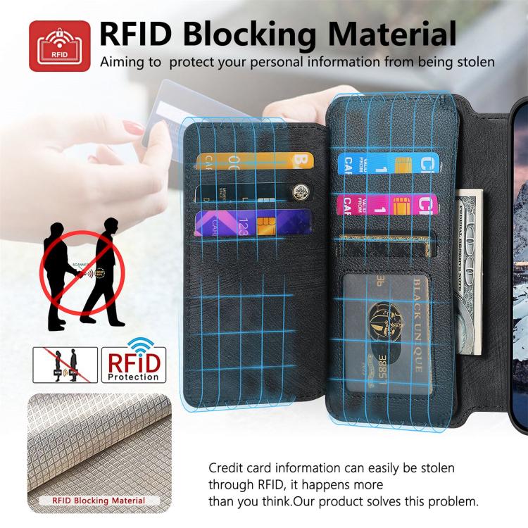 Funda Neo MagSafe RFID antirrobo con cremallera para iPhone 17, funda de cuero retro (negra)
