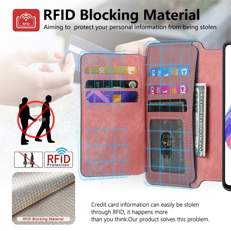 Funda Neo MagSafe RFID antirrobo con cremallera para Samsung Galaxy S24 FE 5G, estilo retro, de cuero (rosa)