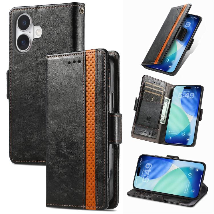 Funda Neo Splicing de cuero con doble hebilla magnética para iPhone 17 (negra)