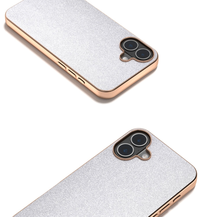 Funda para iPhone 16 con Marco Galvanizado y Purpurina a Prueba de Golpes (Plateada)