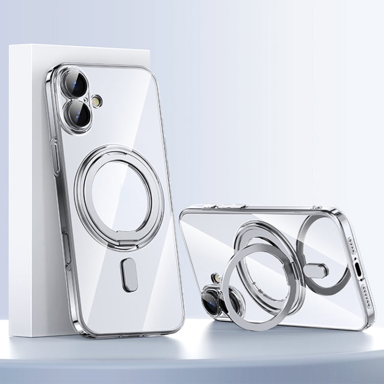 Funda para iPhone 16 con Soporte de Anillo PC Chapado 360 Magsafe (Transparente Plateada)