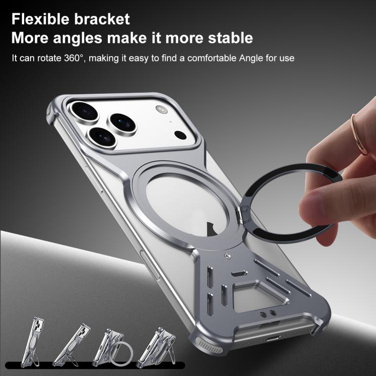 Funda para iPhone 17 Armor 360 con soporte, sin marco, de aleación y compatible con MagSafe (Gris espacial)
