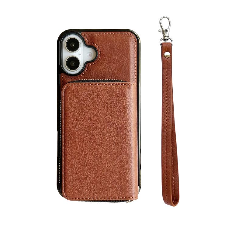Funda para iPhone 17 con cremallera, 11 ranuras para tarjetas y cordón (marrón)