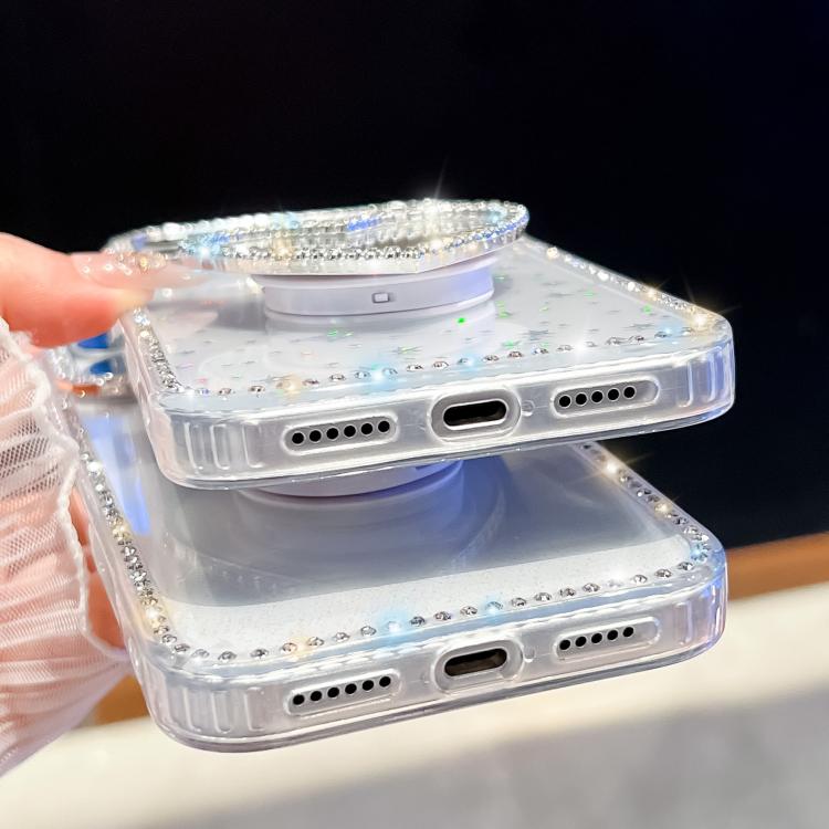 Funda para iPhone 17 con purpurina de diamante y espejo en forma de corazón (estrellas transparentes)