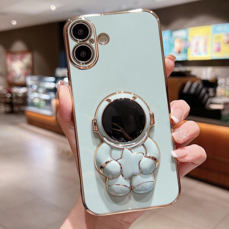 Funda para iPhone 17 con soporte de astronauta y galvanoplastia "Embrace Stars" (verde)