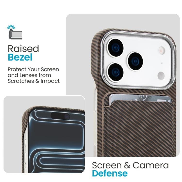 Funda para iPhone 17 Pro con tarjetero magnético MagSafe de fibra de carbono (marrón)