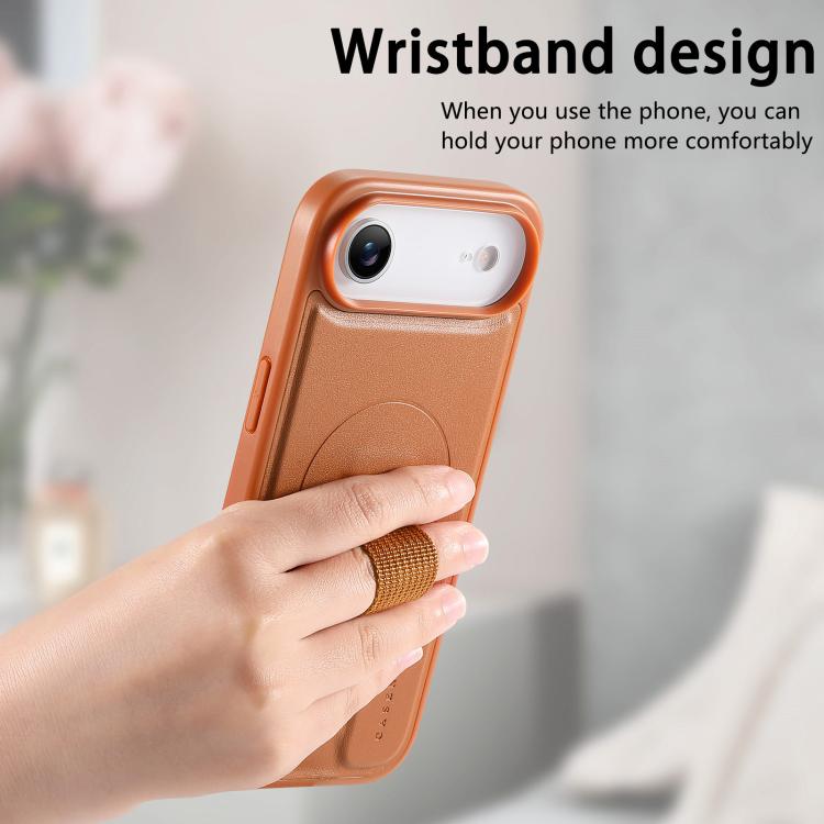 Funda para iPhone Air con correa de muñeca Neo Finger Grip y parte trasera MagSafe (marrón)