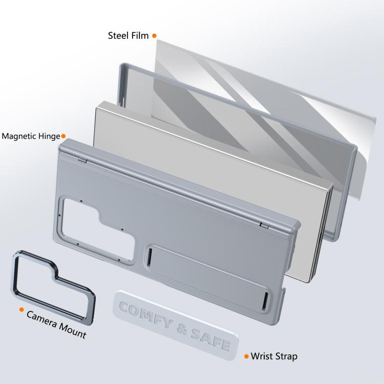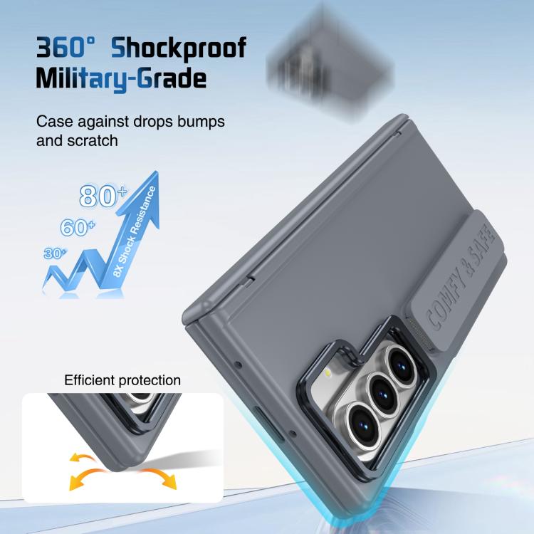 Funda para Samsung Galaxy Z Fold7 con marco de lente integrado y correa para la muñeca (gris)